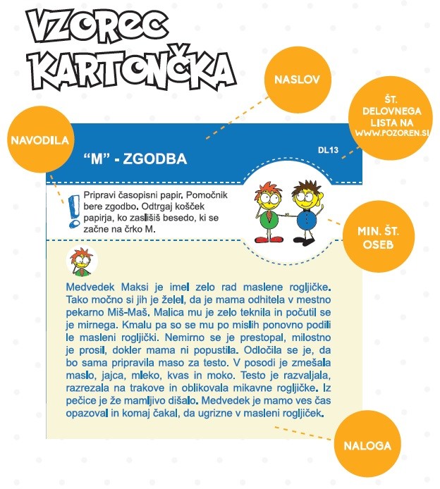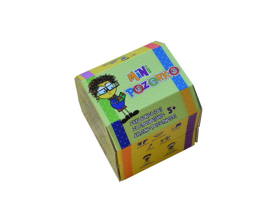 Mini Pozorko vsebuje skrbno izbrane kartončke z vajami, ki jih sicer vsebuje njegov veliki brat Pozorko. Vse izbrane vaje so primerne že za otroke, ki so dopolnili 5 let starosti.